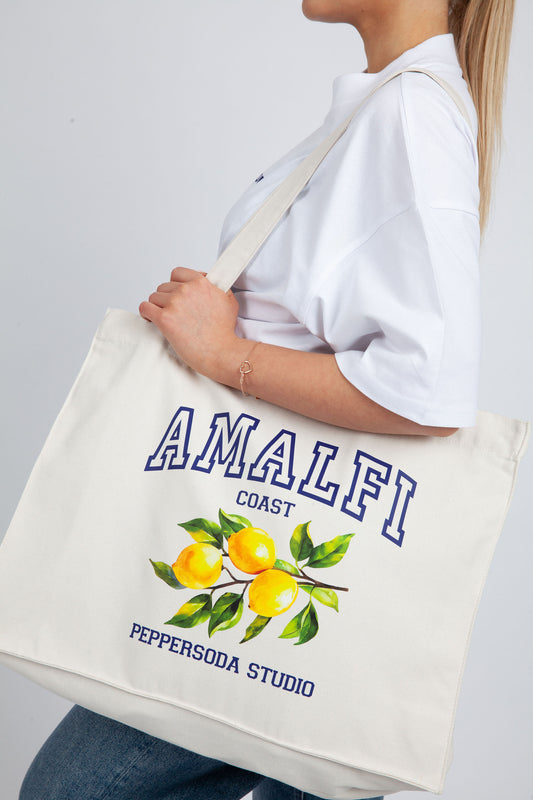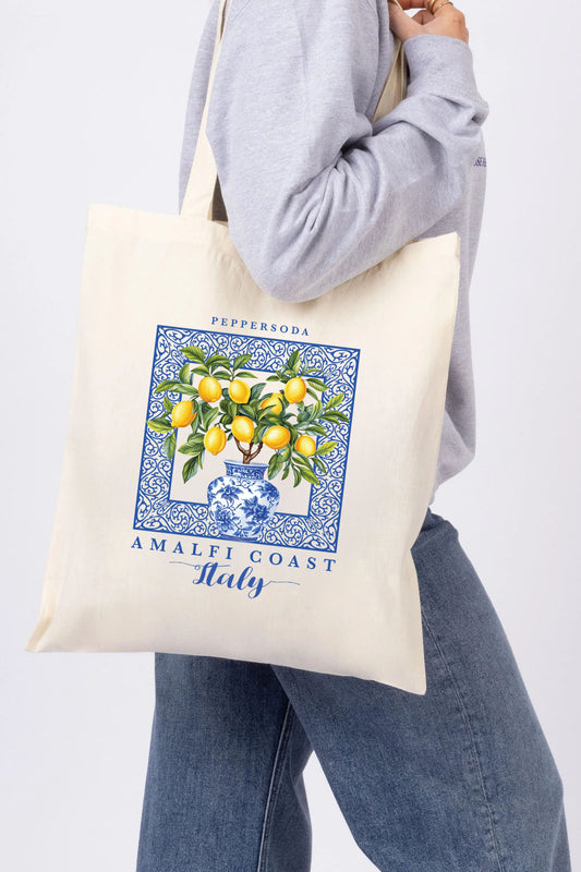 Italian Inspired Amalfi Coast Lemon Printed Lightweight Canvas Bag